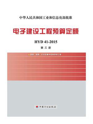 《电子建设工程预算定额》(共五册)经工业和信息化部以工信厅规【2015】77号文批准发布,自2015年8月1日起实施。 本册定额是该套定额的第三册,包括音频、视频、灯光、集中控制系统工程的概预算定额等。 本定额是编制施工图预算、进行工程招投标、签订建设工程承包合同、拨付工程款和办理竣工结算的依据;是统一电子工程预(结)算工程量计算规则、项目划分及计量单位的依据;是编制概算定额、概算指标和估算指标的基础;是完成规定计量单位分项工程计价所需的人工、材料、施工机械和仪器仪表的消耗量标准;也可作为制订企业定额和投标报价的参考。