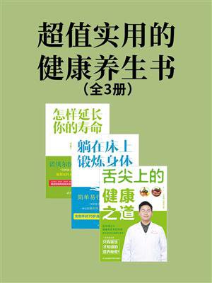 本套书主要包括《舌尖上的健康之道》《躺在床上锻炼身体》《怎样延长你的寿命》三本。对于想要健康生活的现代人来说,有着极其重要的指点作用。 《舌尖上的健康之道》是一部通过饮食来改善健康的养生宝典。 有人或许会说:“我很忙,没时间锻炼。”也有人会说:“没办法,我的工作性质就是如此,必须接触那些有害物质。”没时间也好,没办法也罢,但总得吃饭,那何不将改善身体健康的重心放到饮食上呢?而由医学博士刘春岭、彭永强合著的《舌尖上的健康之道》正是这样一部通过饮食来改善健康的养生宝典,有了它,你就可以大声地与疾病say bye-bye了。 《躺在床上锻炼身体》通过美国养生专家告诉您永葆年轻需要做的最简单易行的运动,一种让您躺在床上就能轻松舒服地进行的锻炼,生物年龄70岁身体肌能30岁的真实案例! 《怎样延长你的寿命》虽然为研究性著作,然而论断精辟,文风简练,语言流畅。正是如此,编者才敢将这盘佳肴精细加工,以飨读者。 全书包括老年的研究,动物的寿命等四个章节。每个章节都围绕主题进行深入的探讨与分析,从生命的本质上为读者解释养生和长寿的秘诀。