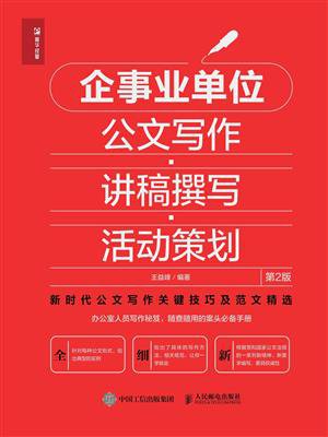 要想写出精美的公文,不仅要讲究写作技法的高超,而且要注重格式的规范。一份公文,在内容写法上无可挑剔,但在行文格式上不规范,也会影响公文的专业性及其效用。 《企事业单位公文写作 讲稿撰写 活动策划 第2版》精心挑选了公务工作中基层接触机会多、使用率高的文种,从公文写作、讲稿撰写、活动策划三个维度,全面系统地讲述了公文的定义和作用、公文种类、公文格式、行文规则、讲稿的特征与类型、撰写技巧,以及活动策划的准备工作、实施技巧等,并提供了大量经典范例,希望帮助读者真正做到文以致用,快速、有效地提高公文写作水平。 这是一本指导性与实用性很强的工具书,适合企事业单位工作人员,尤其是办公室文秘、行政人员等阅读和使用,也可供高校相关专业的师生参考。