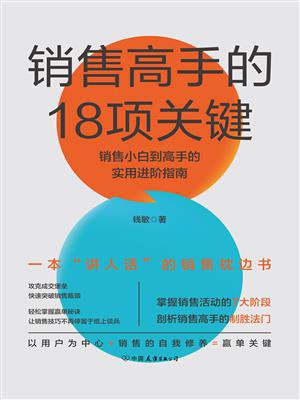 本书作者以切身体验出发,讲述销售人员从入门到精通,大幅提升销售业绩,成为销售过程中的18项关键。本书摒弃传统枯燥的教科书式销售知识讲解,采用平易近人的语言,加上大量真实有趣的案例,全方位呈现真实的销售场景,让新手销售能快速上手,读完就用。同时书中还涉及销售人员向管理者转向应具备的能力,无论是销售新人,还是想要进行身份跃迁的销售人士都适用。